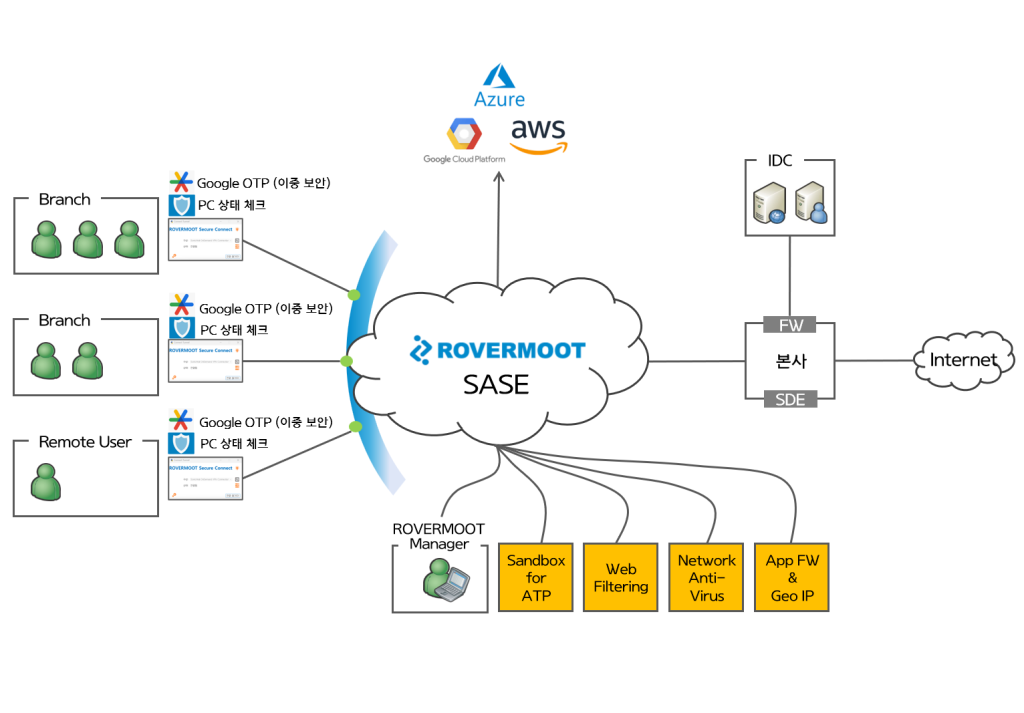 - 자동 접속 방식으로 상시 SASE서비스에 접속 되어 본사 보안 네트워크 연결
